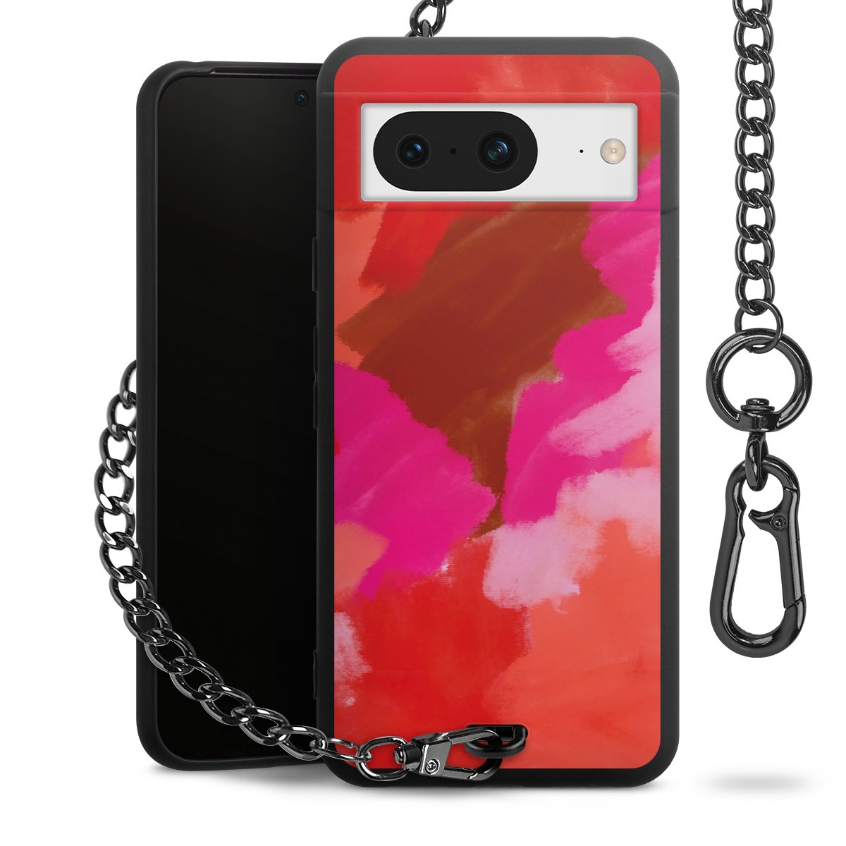 • Mattschwarze Handyhülle mit Metallkette