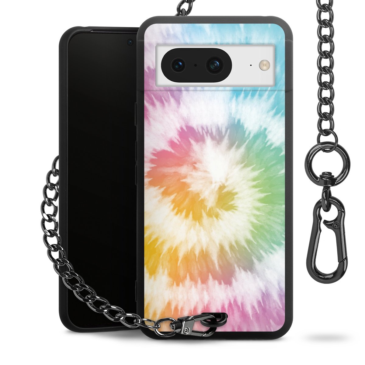 Die mattschwarze Silikon-Handyhülle besteht aus robustem TPU (thermoplastisches Polyurethan). Sie ist flexibel und schützt Dein Smartphone vor Stößen und Kratzern. Die Kette sowie der Karabinerhaken sind aus Metall in Gunmetal-Optik gefertigt. Für dieses Produkt kommen ausschließlich TÜV-geprüfte Materialien zum Einsatz.