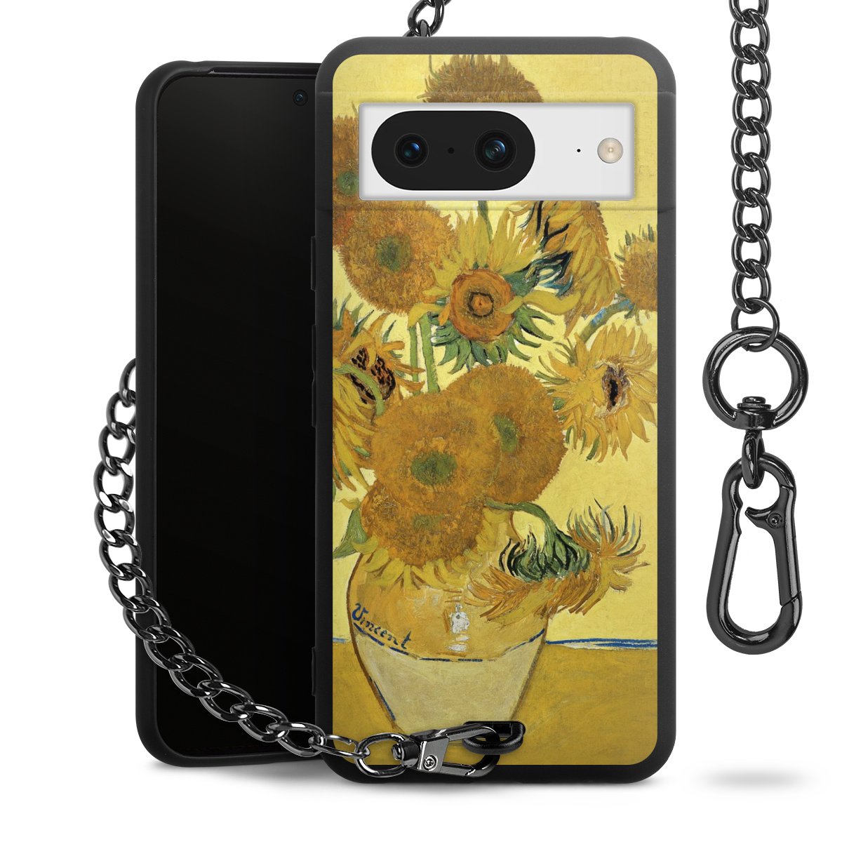 • Mattschwarze Handyhülle mit Metallkette