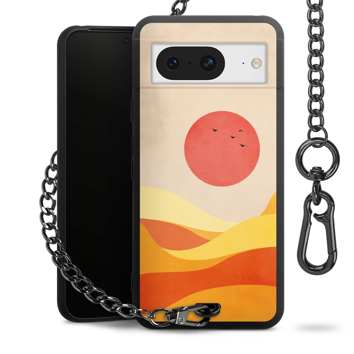 Die mattschwarze Silikon-Handyhülle besteht aus robustem TPU (thermoplastisches Polyurethan). Sie ist flexibel und schützt Dein Smartphone vor Stößen und Kratzern. Die Kette sowie der Karabinerhaken sind aus Metall in Gunmetal-Optik gefertigt. Für dieses Produkt kommen ausschließlich TÜV-geprüfte Materialien zum Einsatz.
