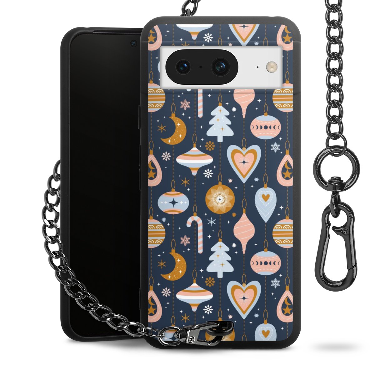 • Mattschwarze Handyhülle mit Metallkette