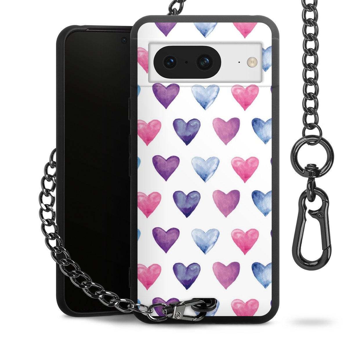 - Mattschwarze Handyhülle mit Metallkette
