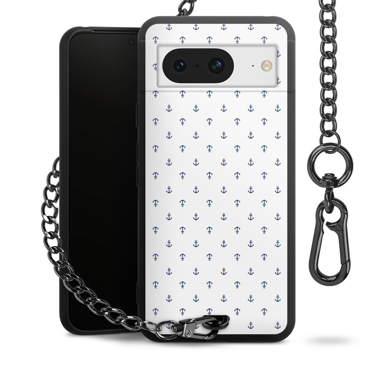 - Mattschwarze Handyhülle mit Metallkette