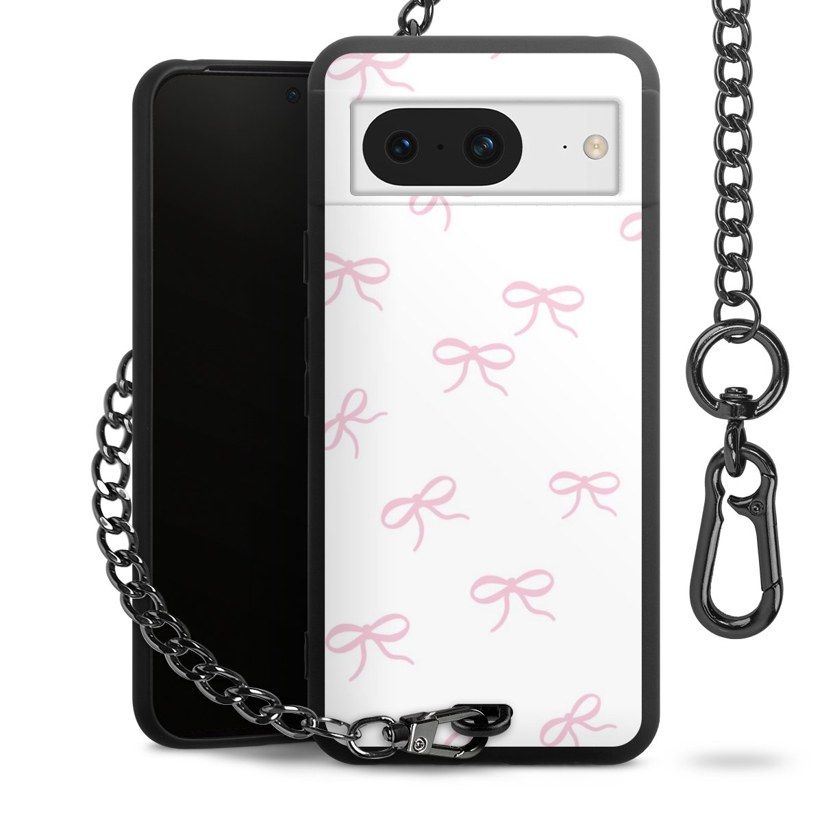 - Mattschwarze Handyhülle mit Metallkette
