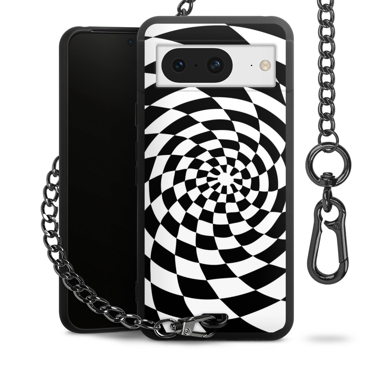 • Mattschwarze Handyhülle mit Metallkette