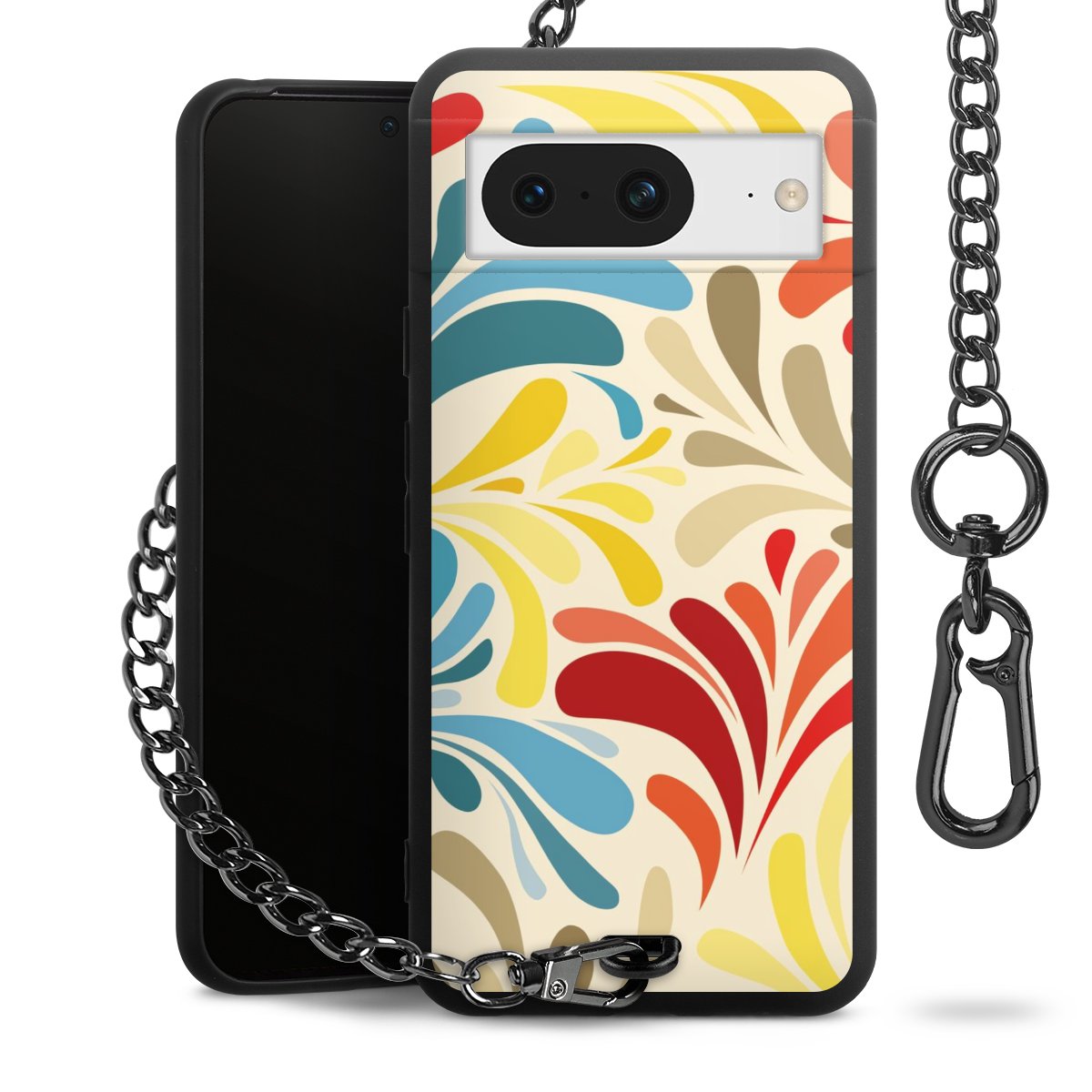 - Mattschwarze Handyhülle mit Metallkette