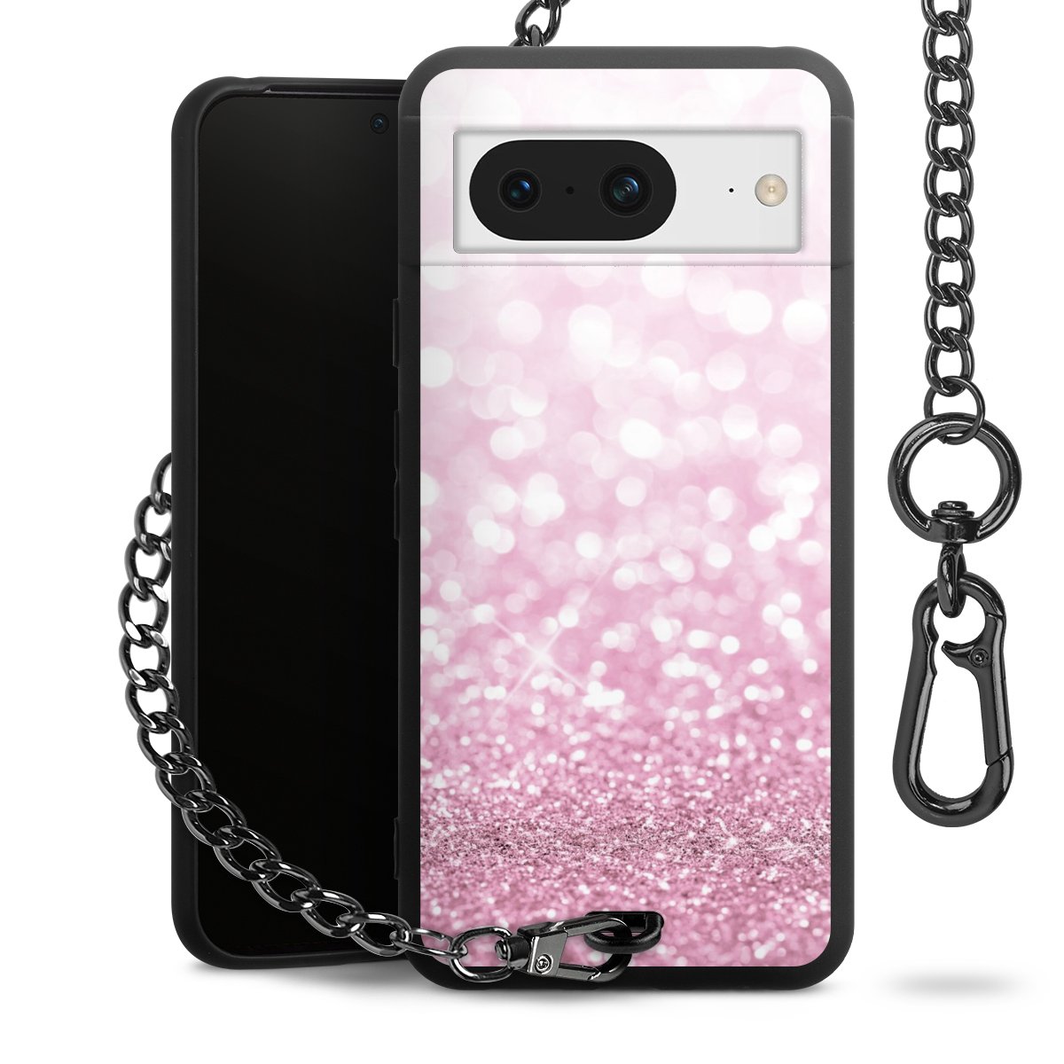 • Mattschwarze Handyhülle mit Metallkette