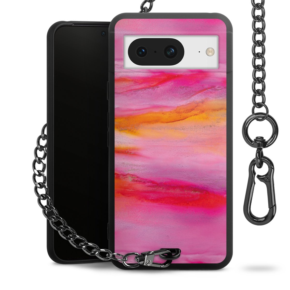 • Mattschwarze Handyhülle mit Metallkette