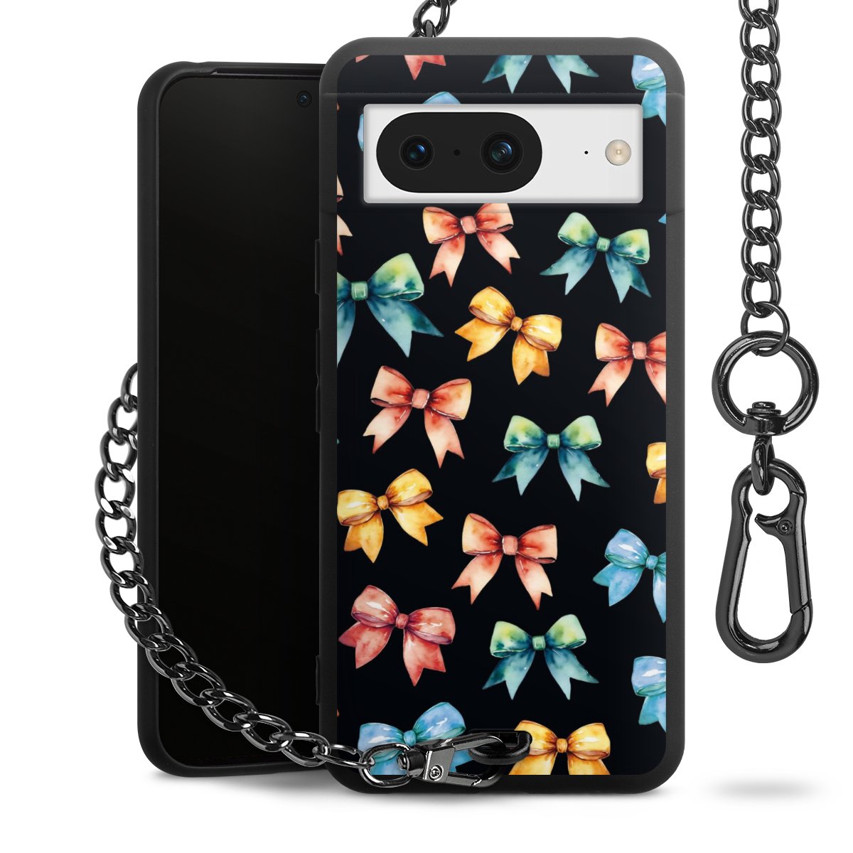 • Mattschwarze Handyhülle mit Metallkette