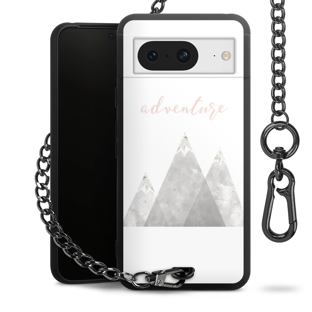 Die mattschwarze Silikon-Handyhülle besteht aus robustem TPU (thermoplastisches Polyurethan). Sie ist flexibel und schützt Dein Smartphone vor Stößen und Kratzern. Die Kette sowie der Karabinerhaken sind aus Metall in Gunmetal-Optik gefertigt. Für dieses Produkt kommen ausschließlich TÜV-geprüfte Materialien zum Einsatz.