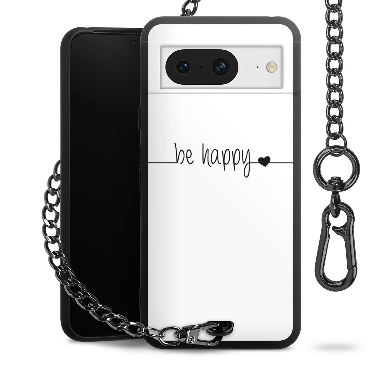 Die mattschwarze Silikon-Handyhülle besteht aus robustem TPU (thermoplastisches Polyurethan). Sie ist flexibel und schützt Dein Smartphone vor Stößen und Kratzern. Die Kette sowie der Karabinerhaken sind aus Metall in Gunmetal-Optik gefertigt. Für dieses Produkt kommen ausschließlich TÜV-geprüfte Materialien zum Einsatz.