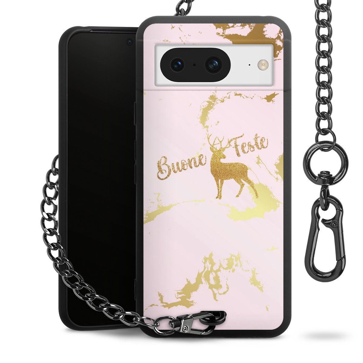 • Mattschwarze Handyhülle mit Metallkette