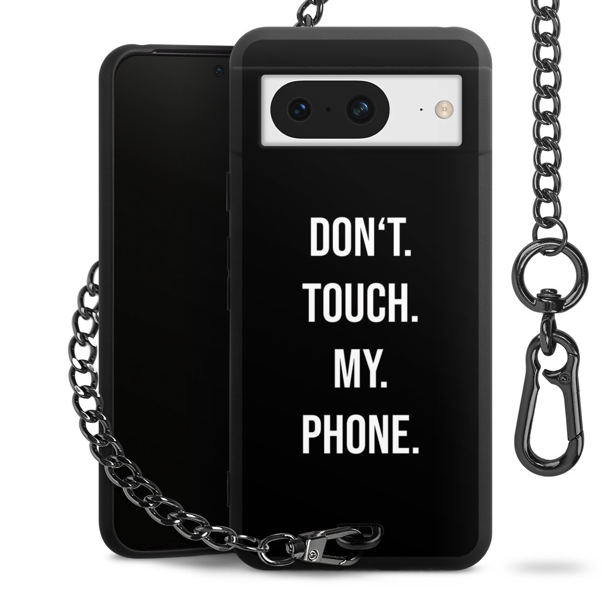 - Mattschwarze Handyhülle mit Metallkette