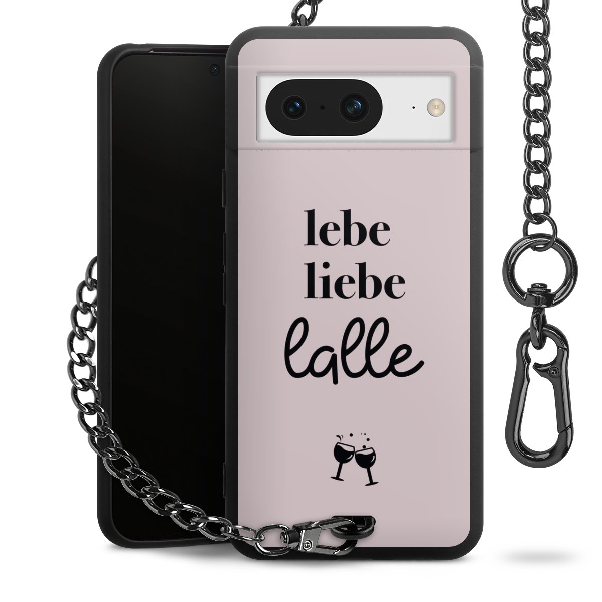 Die mattschwarze Silikon-Handyhülle besteht aus robustem TPU (thermoplastisches Polyurethan). Sie ist flexibel und schützt Dein Smartphone vor Stößen und Kratzern. Die Kette sowie der Karabinerhaken sind aus Metall in Gunmetal-Optik gefertigt. Für dieses Produkt kommen ausschließlich TÜV-geprüfte Materialien zum Einsatz.