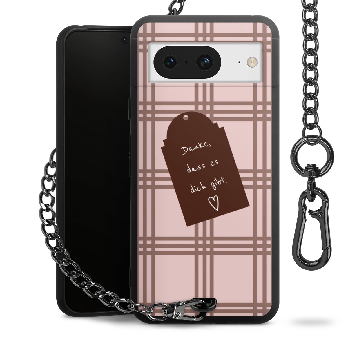 Die mattschwarze Silikon-Handyhülle besteht aus robustem TPU (thermoplastisches Polyurethan). Sie ist flexibel und schützt Dein Smartphone vor Stößen und Kratzern. Die Kette sowie der Karabinerhaken sind aus Metall in Gunmetal-Optik gefertigt. Für dieses Produkt kommen ausschließlich TÜV-geprüfte Materialien zum Einsatz.