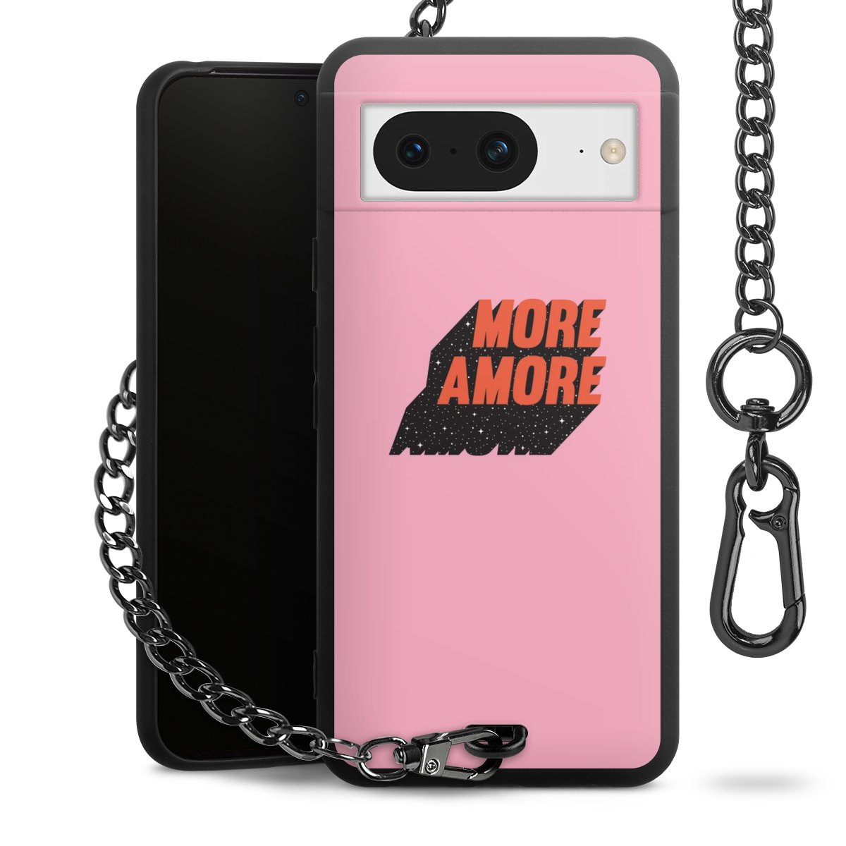• Mattschwarze Handyhülle mit Metallkette