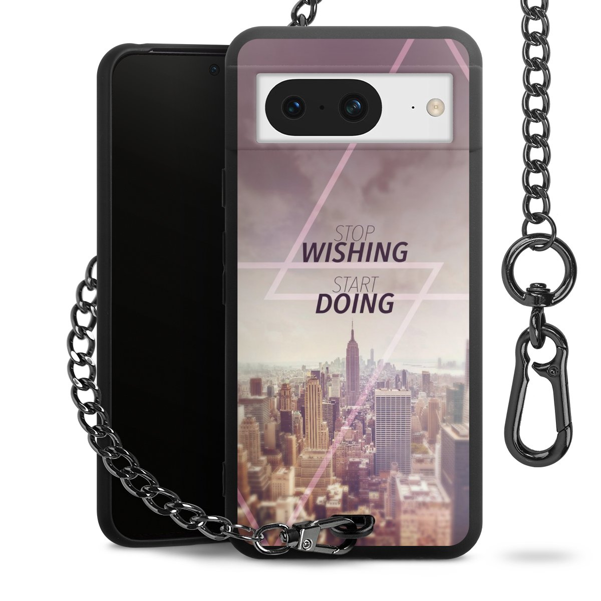 - Mattschwarze Handyhülle mit Metallkette