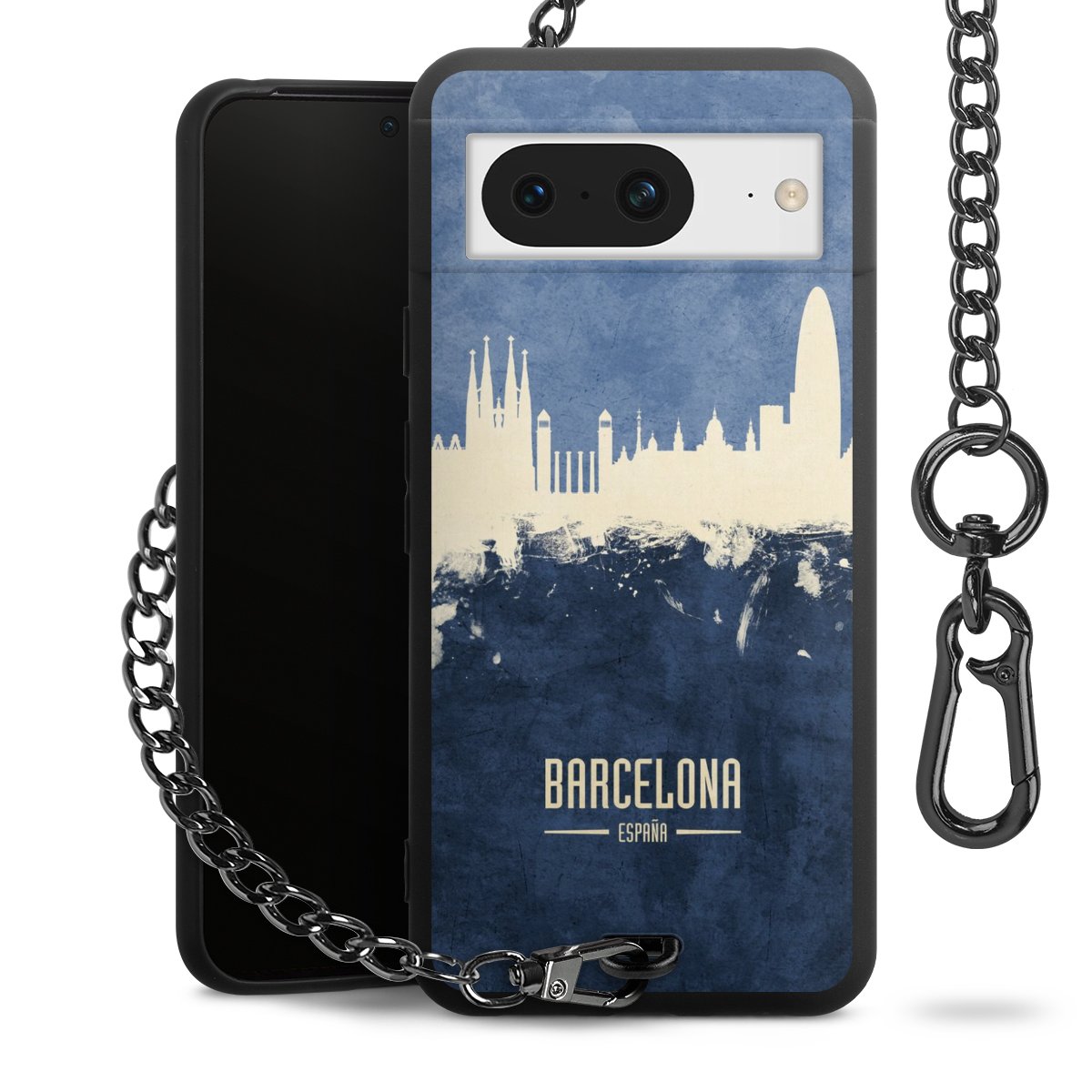 • Mattschwarze Handyhülle mit Metallkette