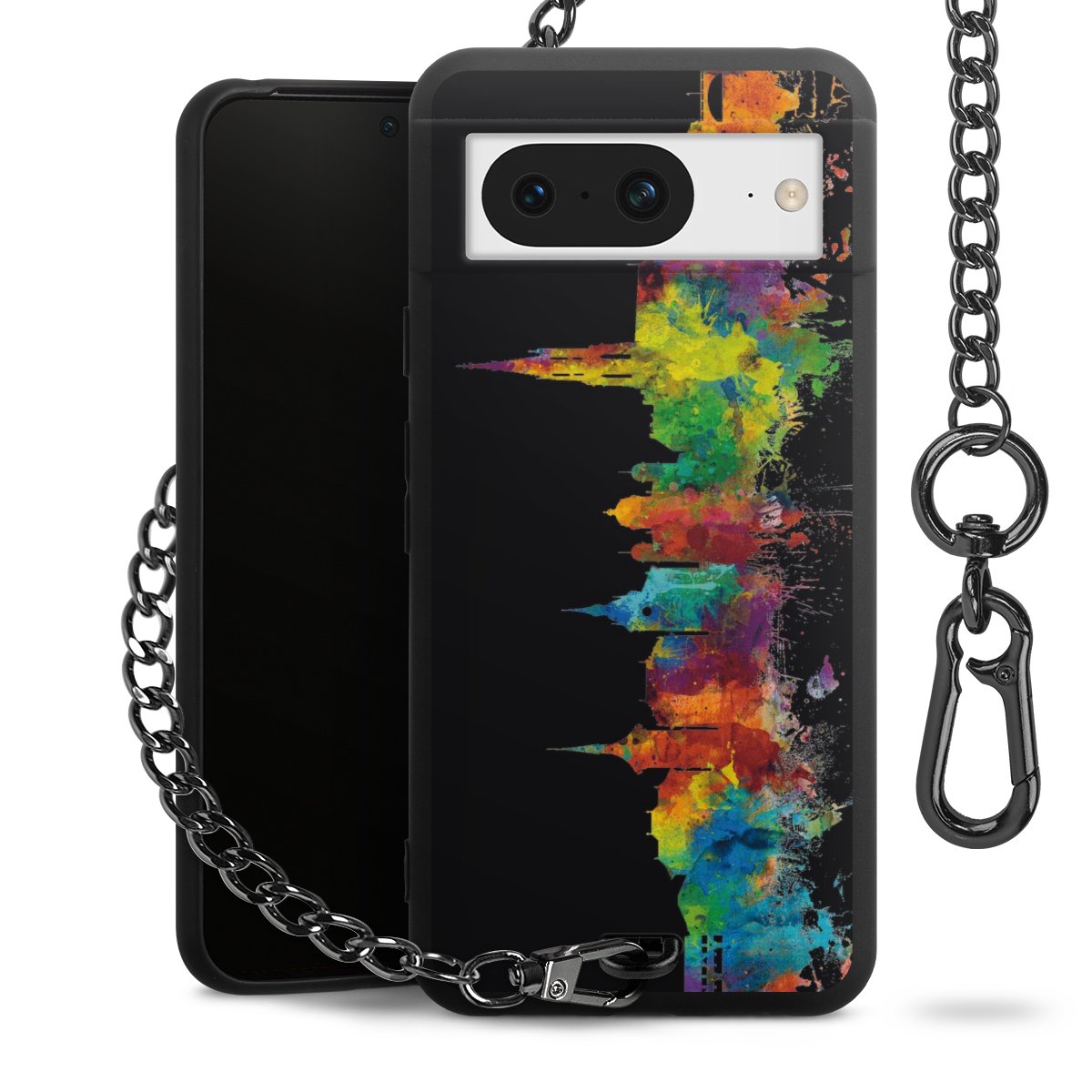 Die mattschwarze Silikon-Handyhülle besteht aus robustem TPU (thermoplastisches Polyurethan). Sie ist flexibel und schützt Dein Smartphone vor Stößen und Kratzern. Die Kette sowie der Karabinerhaken sind aus Metall in Gunmetal-Optik gefertigt. Für dieses Produkt kommen ausschließlich TÜV-geprüfte Materialien zum Einsatz.