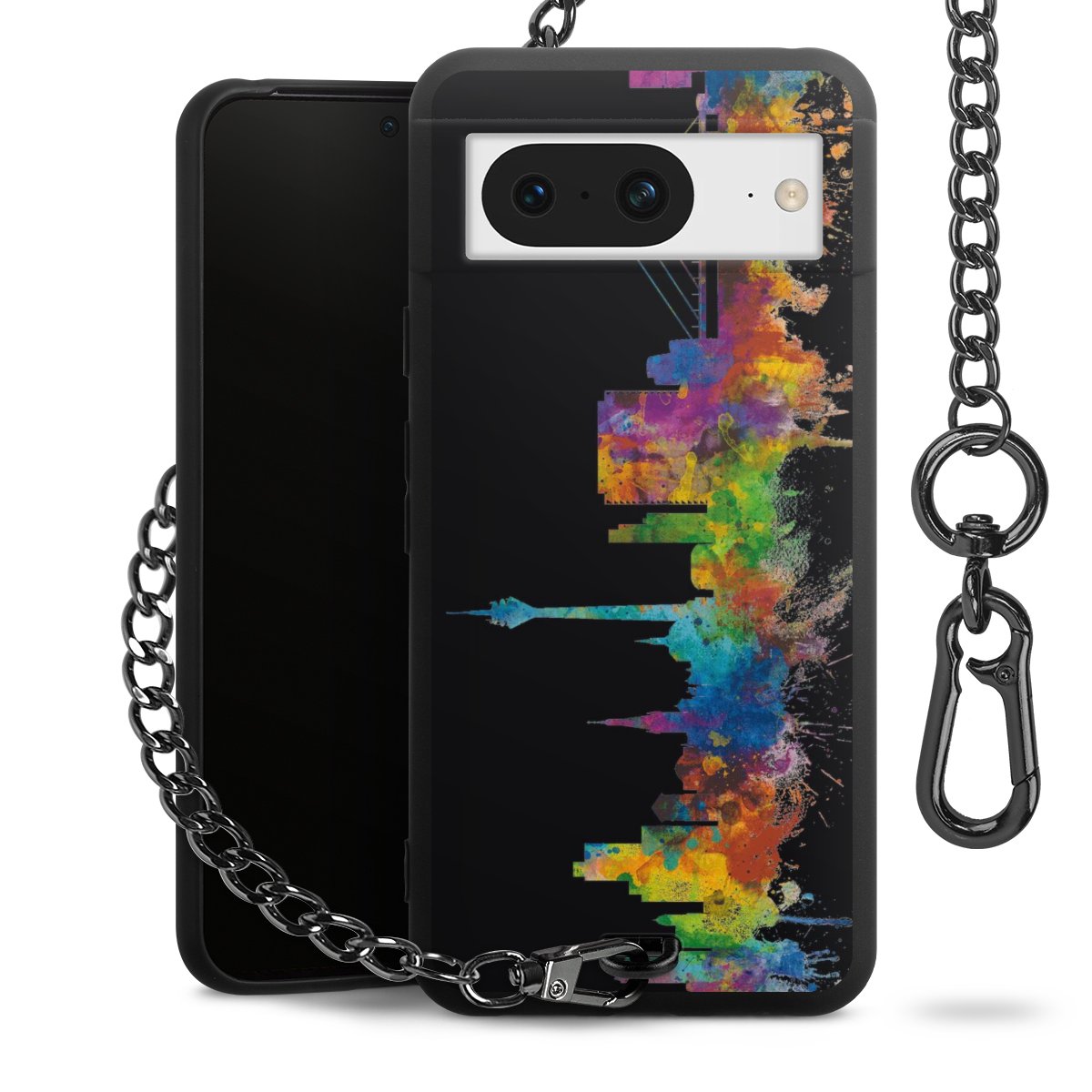 Die mattschwarze Silikon-Handyhülle besteht aus robustem TPU (thermoplastisches Polyurethan). Sie ist flexibel und schützt Dein Smartphone vor Stößen und Kratzern. Die Kette sowie der Karabinerhaken sind aus Metall in Gunmetal-Optik gefertigt. Für dieses Produkt kommen ausschließlich TÜV-geprüfte Materialien zum Einsatz.