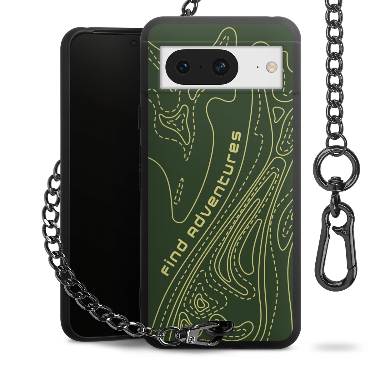 Die mattschwarze Silikon-Handyhülle besteht aus robustem TPU (thermoplastisches Polyurethan). Sie ist flexibel und schützt Dein Smartphone vor Stößen und Kratzern. Die Kette sowie der Karabinerhaken sind aus Metall in Gunmetal-Optik gefertigt. Für dieses Produkt kommen ausschließlich TÜV-geprüfte Materialien zum Einsatz.