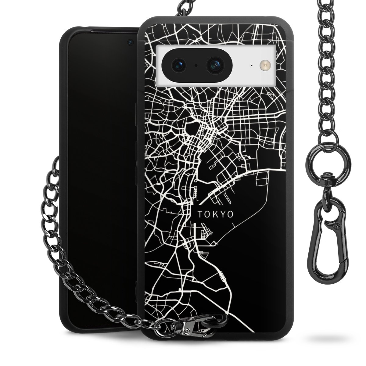 Die mattschwarze Silikon-Handyhülle besteht aus robustem TPU (thermoplastisches Polyurethan). Sie ist flexibel und schützt Dein Smartphone vor Stößen und Kratzern. Die Kette sowie der Karabinerhaken sind aus Metall in Gunmetal-Optik gefertigt. Für dieses Produkt kommen ausschließlich TÜV-geprüfte Materialien zum Einsatz.