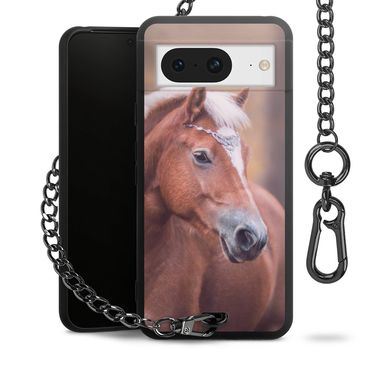 • Mattschwarze Handyhülle mit Metallkette