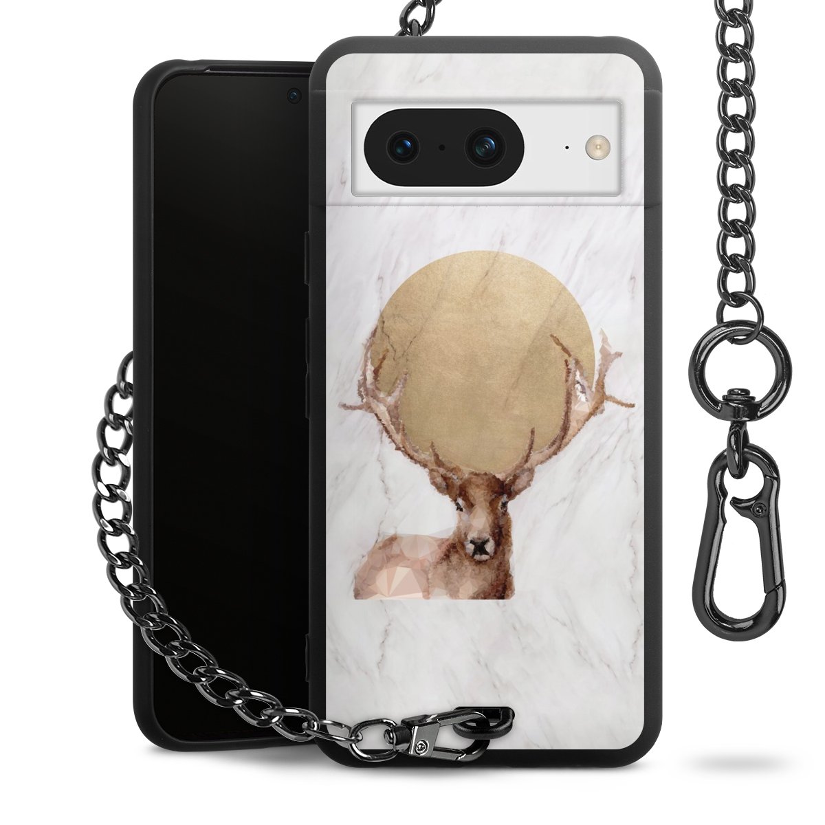 • Mattschwarze Handyhülle mit Metallkette