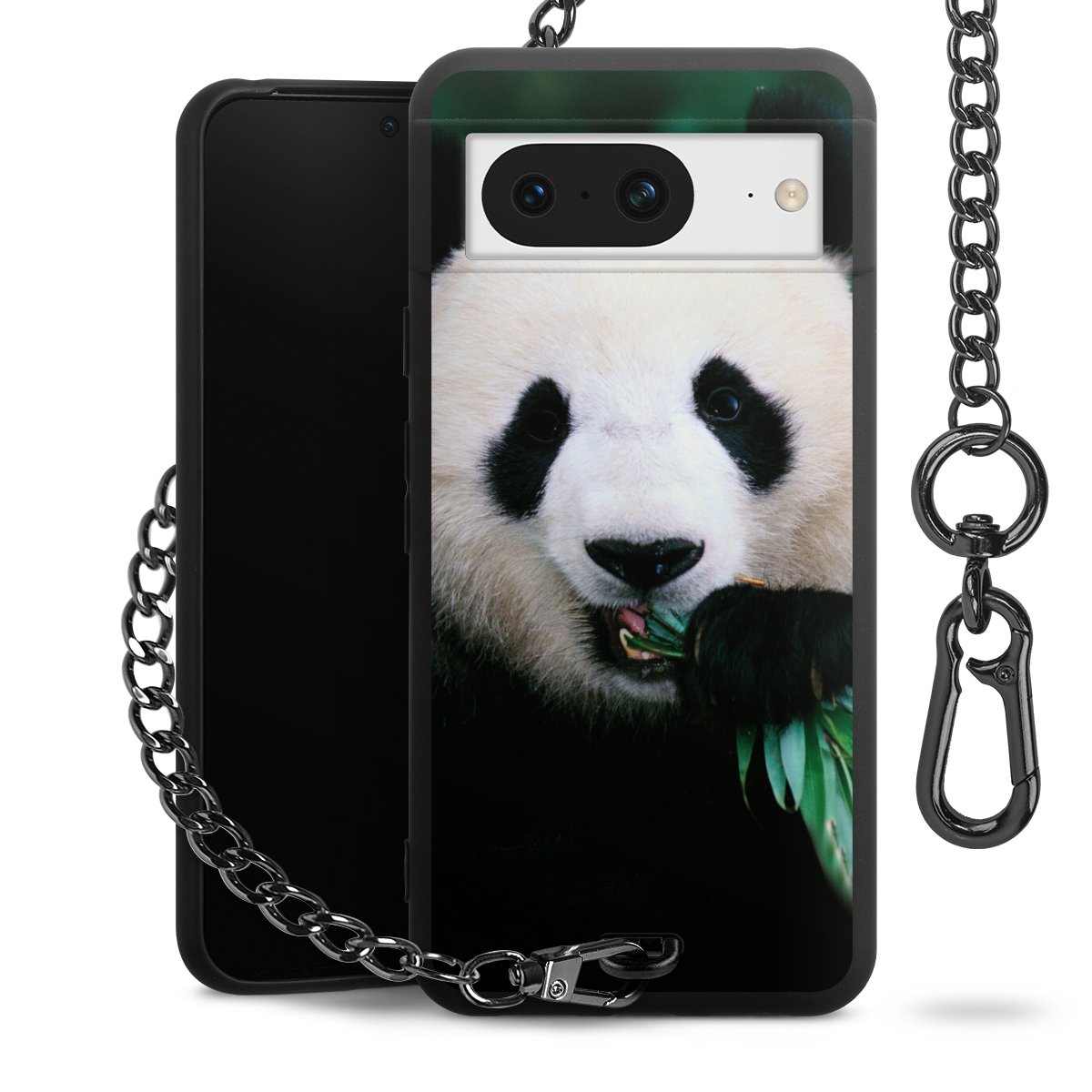 - Mattschwarze Handyhülle mit Metallkette