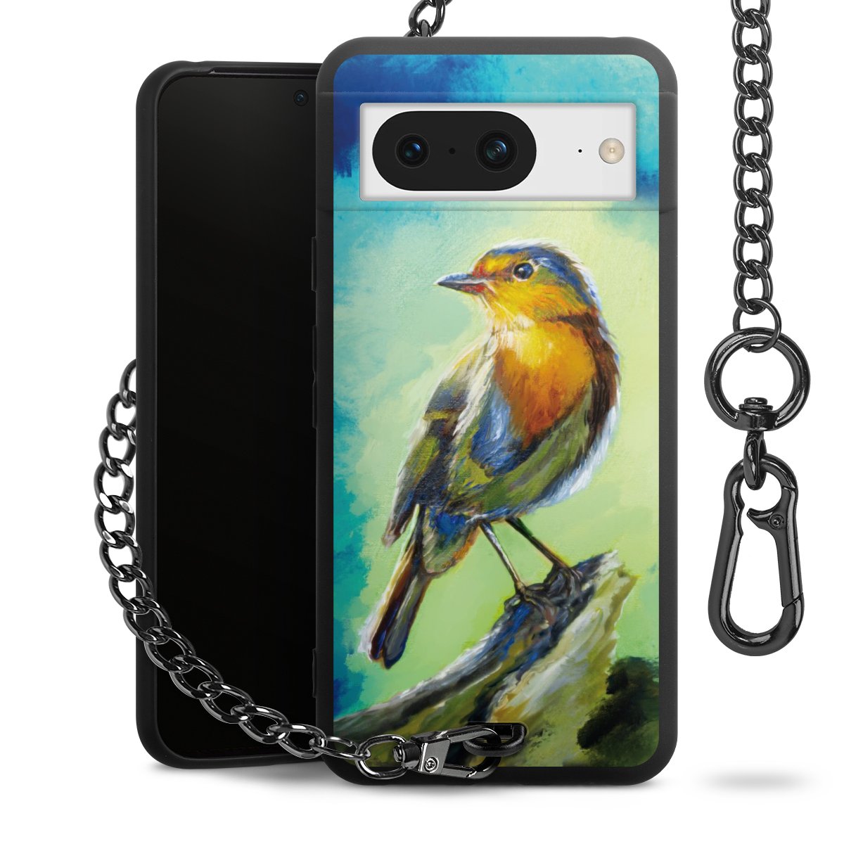 • Mattschwarze Handyhülle mit Metallkette