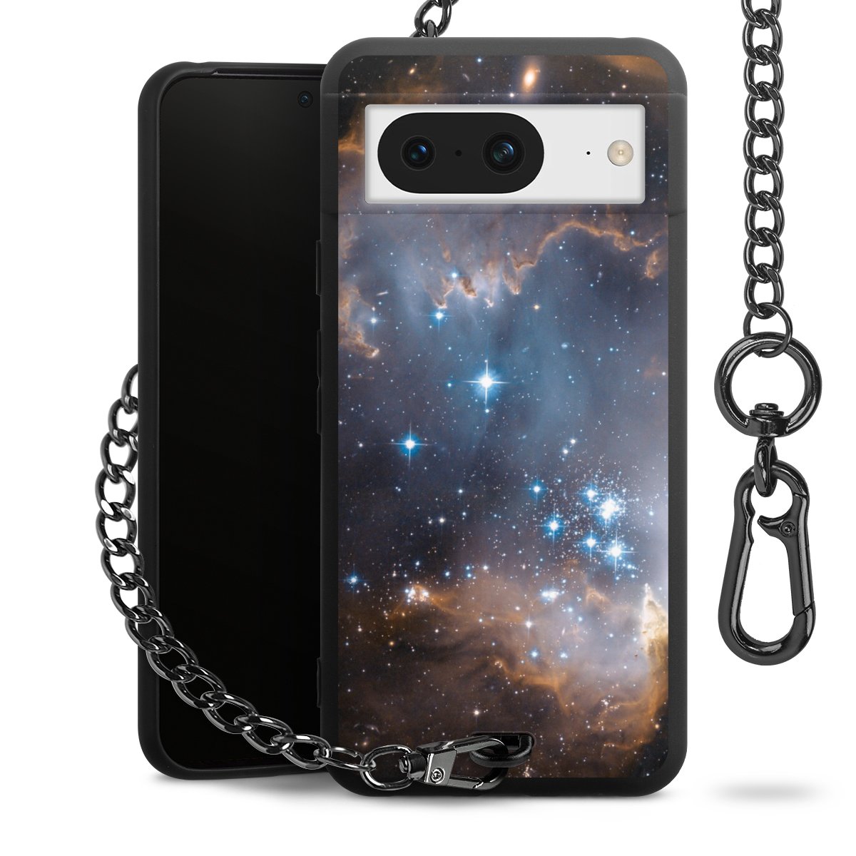 - Mattschwarze Handyhülle mit Metallkette