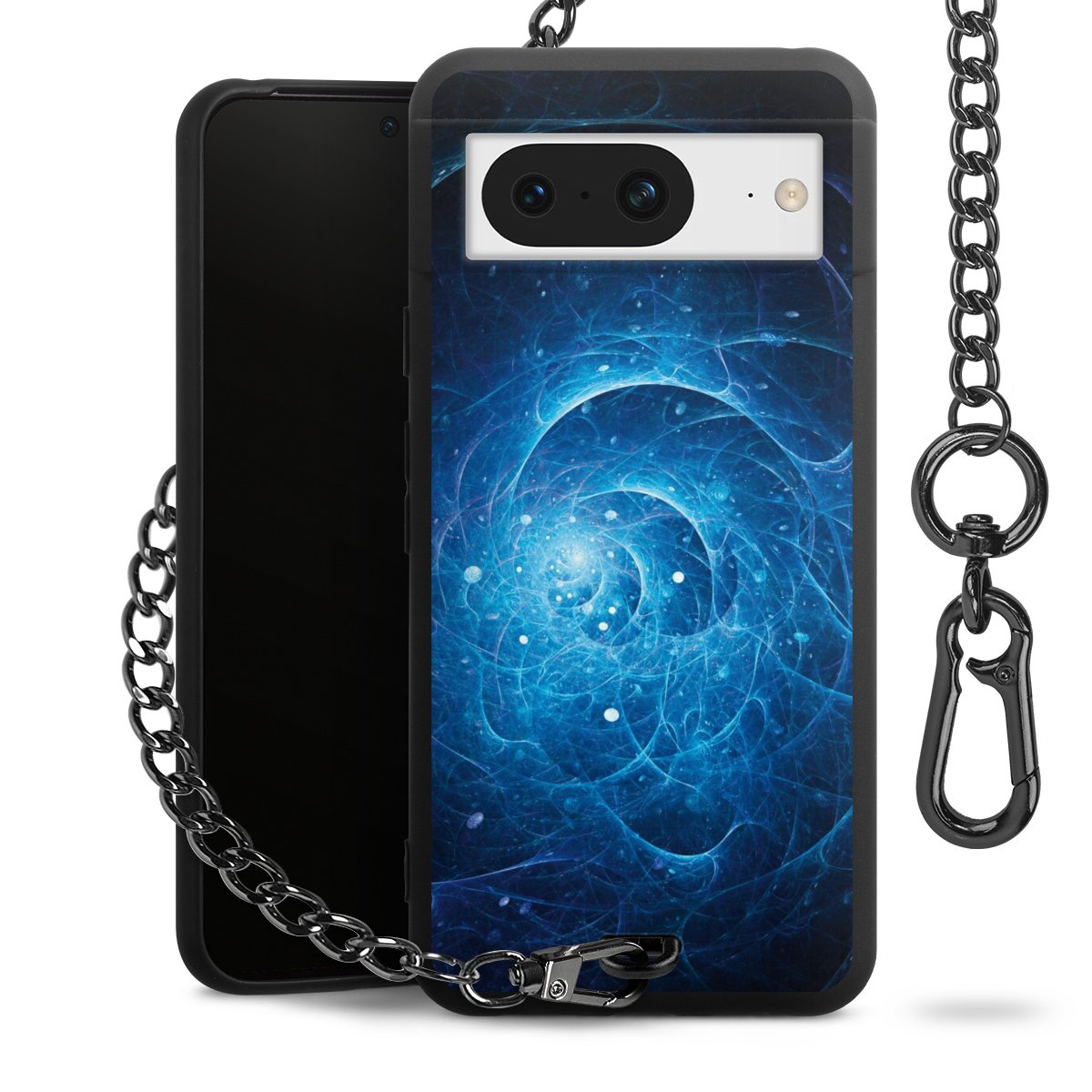 - Mattschwarze Handyhülle mit Metallkette