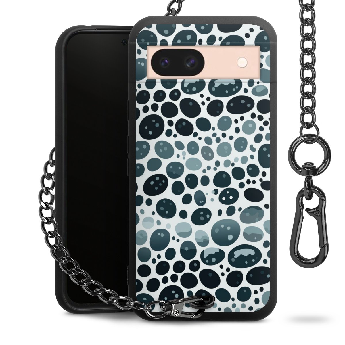 Die mattschwarze Silikon-Handyhülle besteht aus robustem TPU (thermoplastisches Polyurethan). Sie ist flexibel und schützt Dein Smartphone vor Stößen und Kratzern. Die Kette sowie der Karabinerhaken sind aus Metall in Gunmetal-Optik gefertigt. Für dieses Produkt kommen ausschließlich TÜV-geprüfte Materialien zum Einsatz.