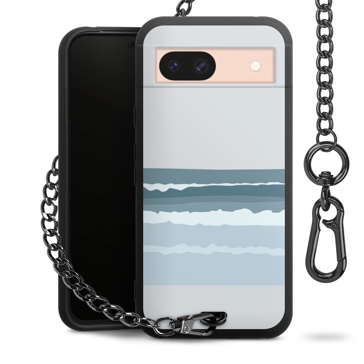 - Mattschwarze Handyhülle mit Metallkette