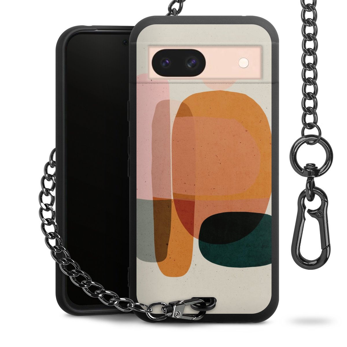Die mattschwarze Silikon-Handyhülle besteht aus robustem TPU (thermoplastisches Polyurethan). Sie ist flexibel und schützt Dein Smartphone vor Stößen und Kratzern. Die Kette sowie der Karabinerhaken sind aus Metall in Gunmetal-Optik gefertigt. Für dieses Produkt kommen ausschließlich TÜV-geprüfte Materialien zum Einsatz.