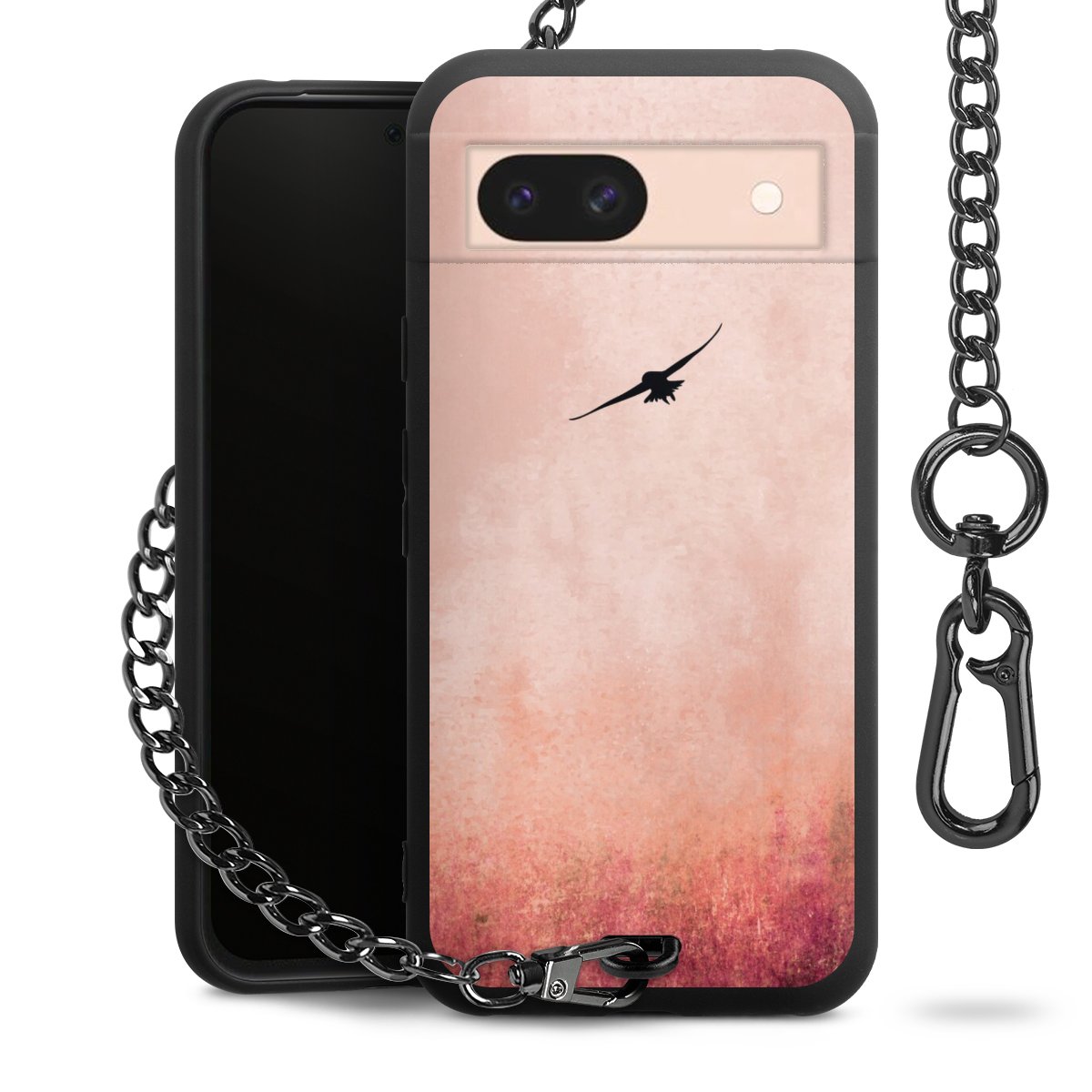 Die mattschwarze Silikon-Handyhülle besteht aus robustem TPU (thermoplastisches Polyurethan). Sie ist flexibel und schützt Dein Smartphone vor Stößen und Kratzern. Die Kette sowie der Karabinerhaken sind aus Metall in Gunmetal-Optik gefertigt. Für dieses Produkt kommen ausschließlich TÜV-geprüfte Materialien zum Einsatz.