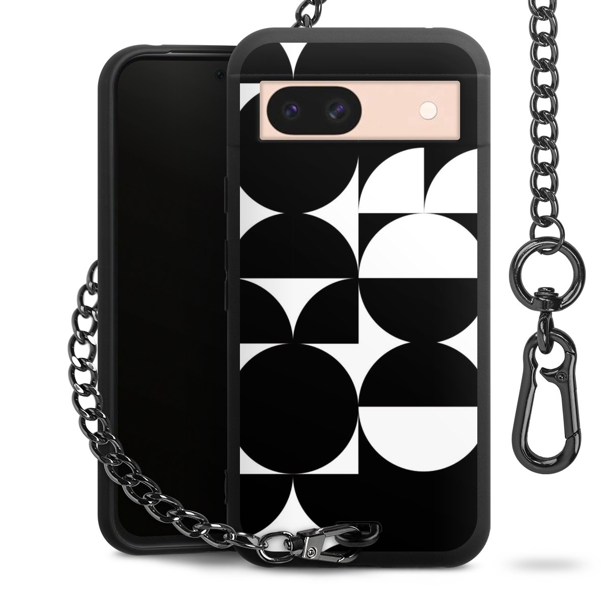 - Mattschwarze Handyhülle mit Metallkette