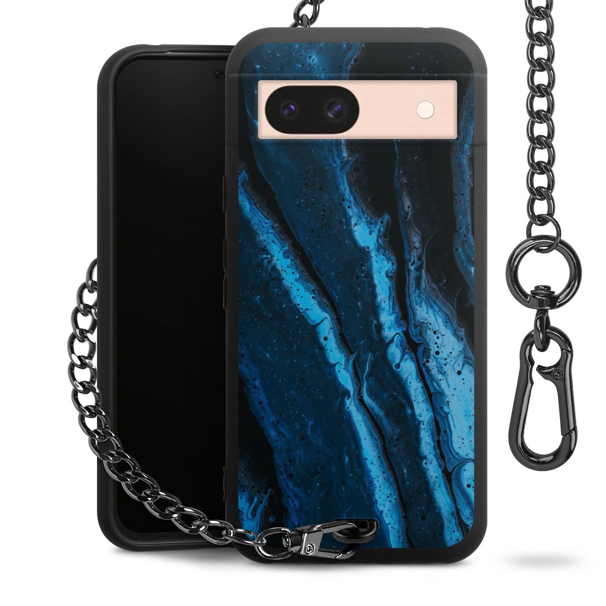 - Mattschwarze Handyhülle mit Metallkette