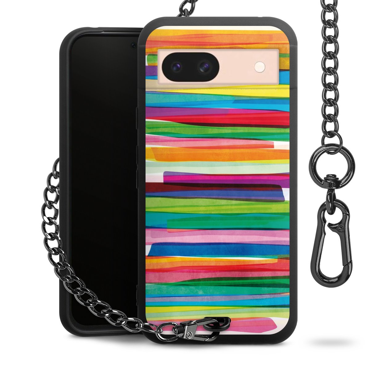 Die mattschwarze Silikon-Handyhülle besteht aus robustem TPU (thermoplastisches Polyurethan). Sie ist flexibel und schützt Dein Smartphone vor Stößen und Kratzern. Die Kette sowie der Karabinerhaken sind aus Metall in Gunmetal-Optik gefertigt. Für dieses Produkt kommen ausschließlich TÜV-geprüfte Materialien zum Einsatz.