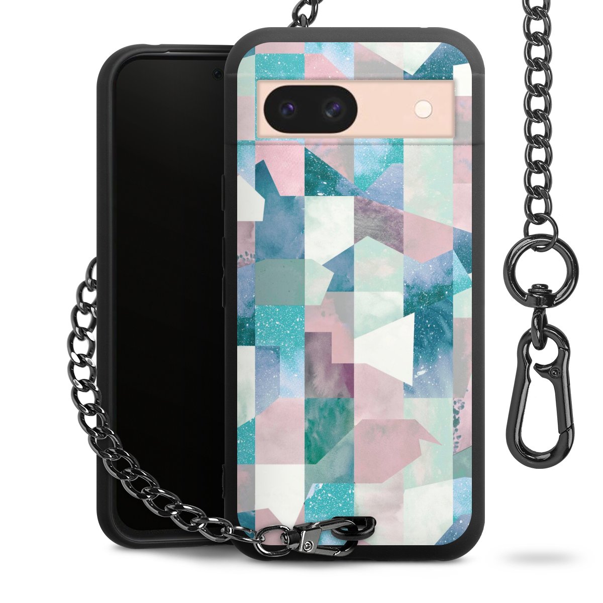 • Mattschwarze Handyhülle mit Metallkette