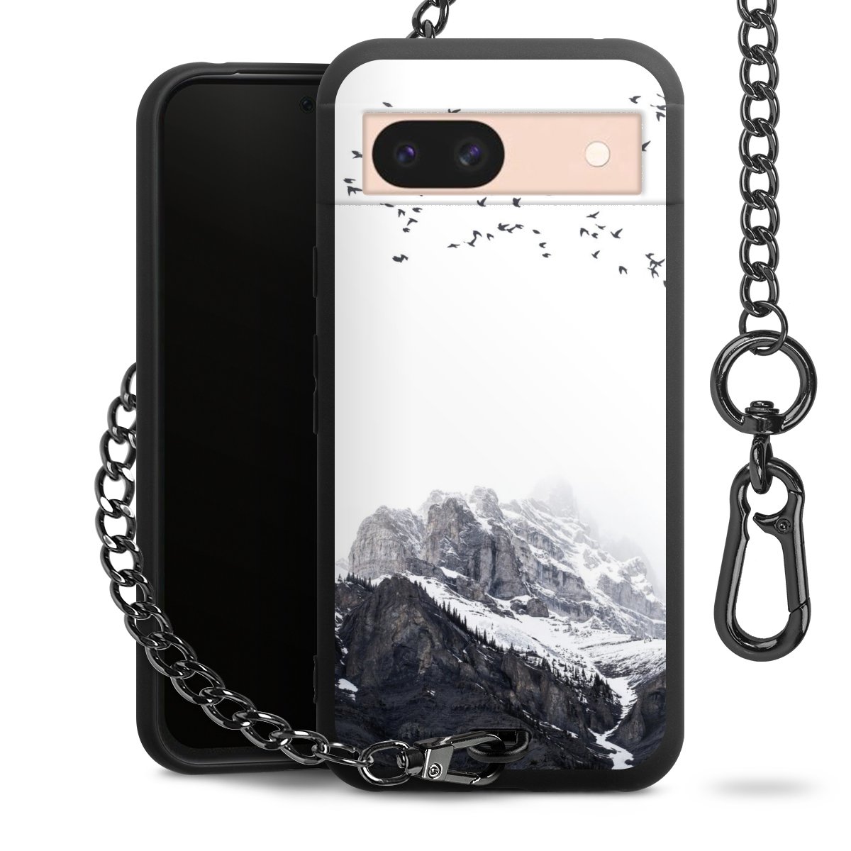 • Mattschwarze Handyhülle mit Metallkette