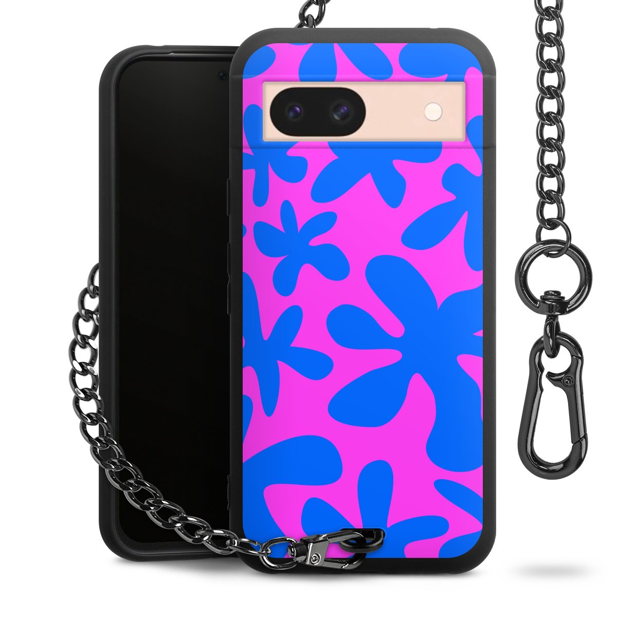Die mattschwarze Silikon-Handyhülle besteht aus robustem TPU (thermoplastisches Polyurethan). Sie ist flexibel und schützt Dein Smartphone vor Stößen und Kratzern. Die Kette sowie der Karabinerhaken sind aus Metall in Gunmetal-Optik gefertigt. Für dieses Produkt kommen ausschließlich TÜV-geprüfte Materialien zum Einsatz.