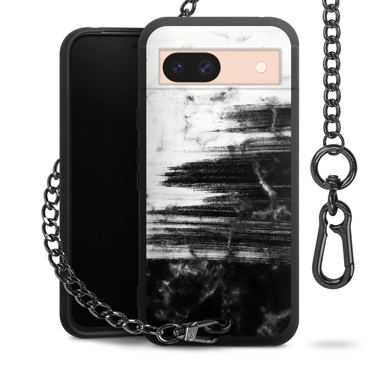 • Mattschwarze Handyhülle mit Metallkette
