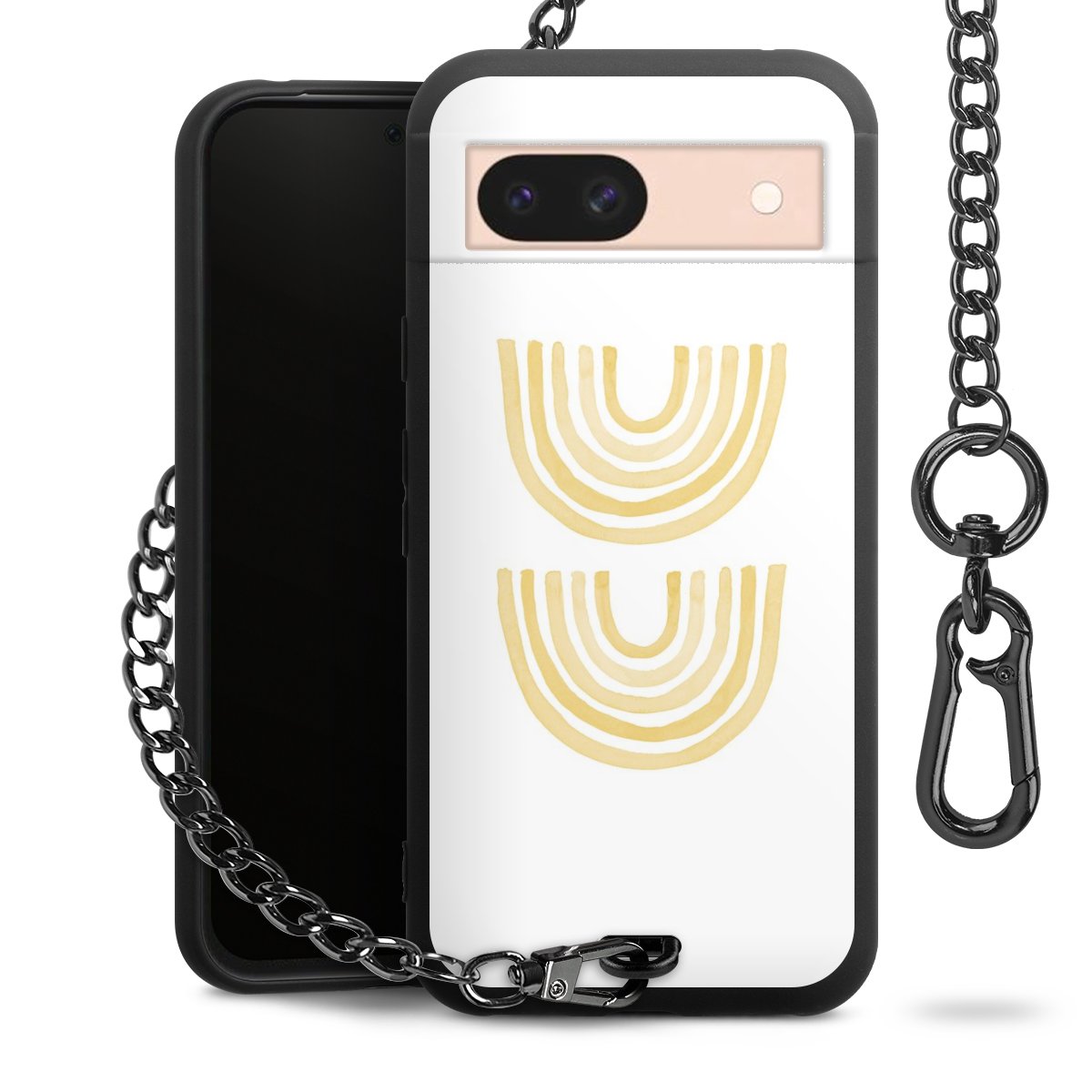 Die mattschwarze Silikon-Handyhülle besteht aus robustem TPU (thermoplastisches Polyurethan). Sie ist flexibel und schützt Dein Smartphone vor Stößen und Kratzern. Die Kette sowie der Karabinerhaken sind aus Metall in Gunmetal-Optik gefertigt. Für dieses Produkt kommen ausschließlich TÜV-geprüfte Materialien zum Einsatz.