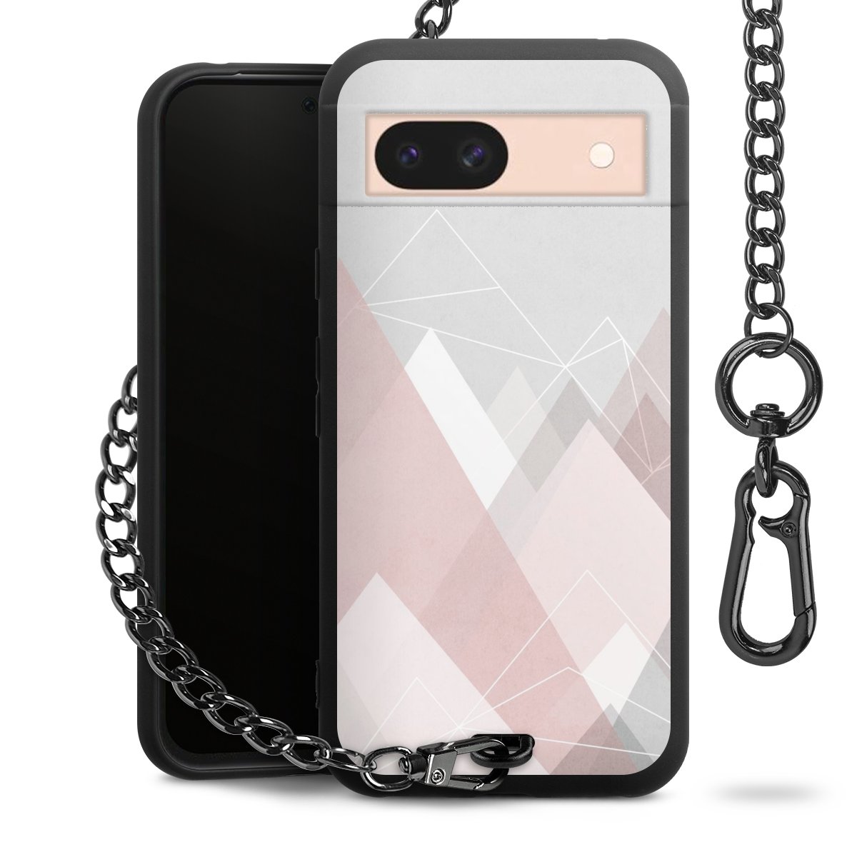 • Mattschwarze Handyhülle mit Metallkette