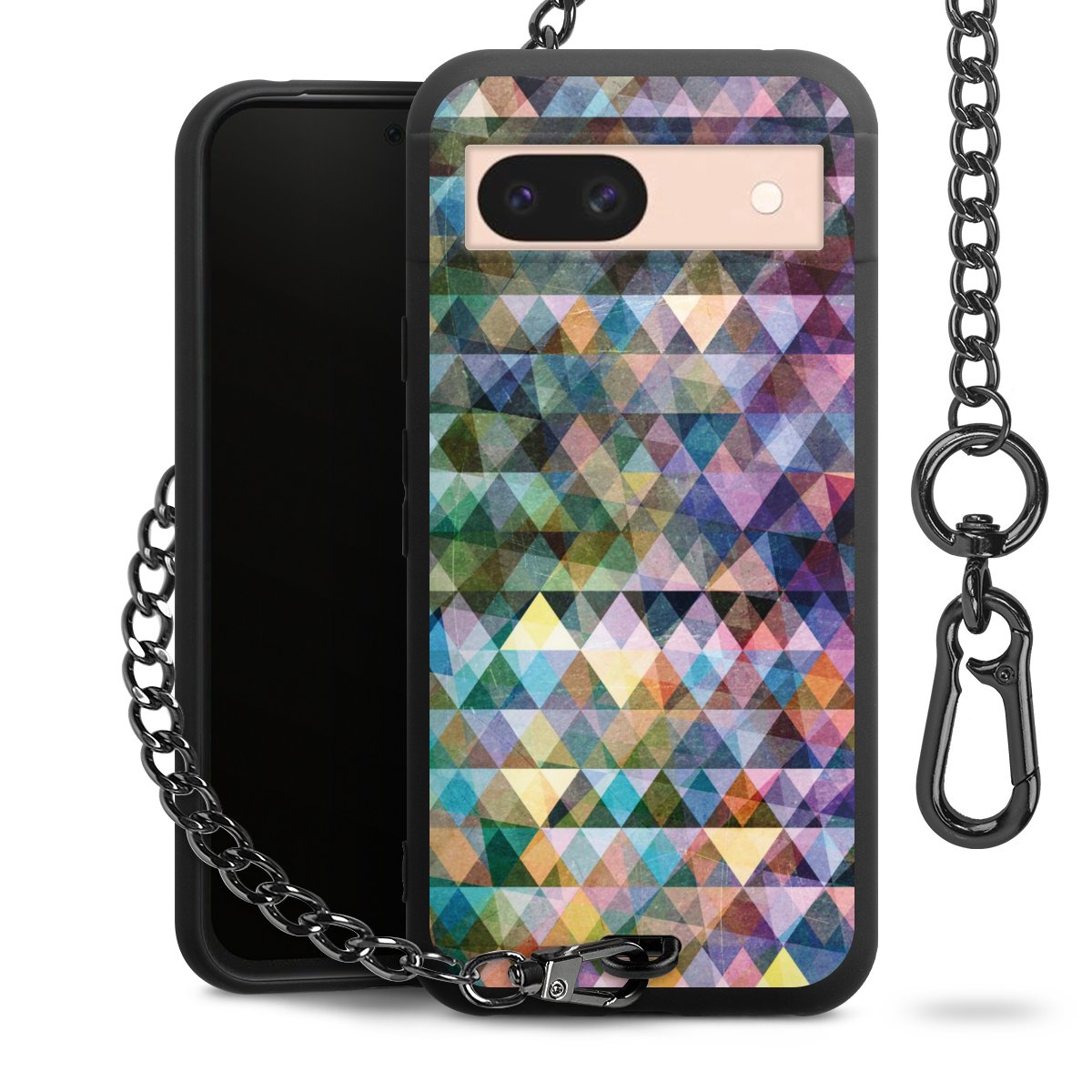 • Mattschwarze Handyhülle mit Metallkette