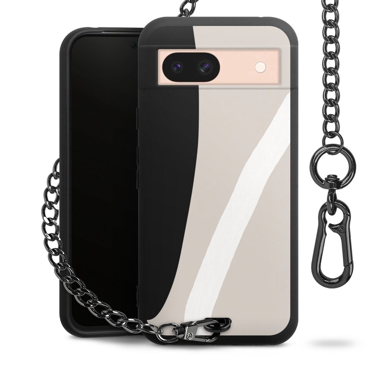 • Mattschwarze Handyhülle mit Metallkette