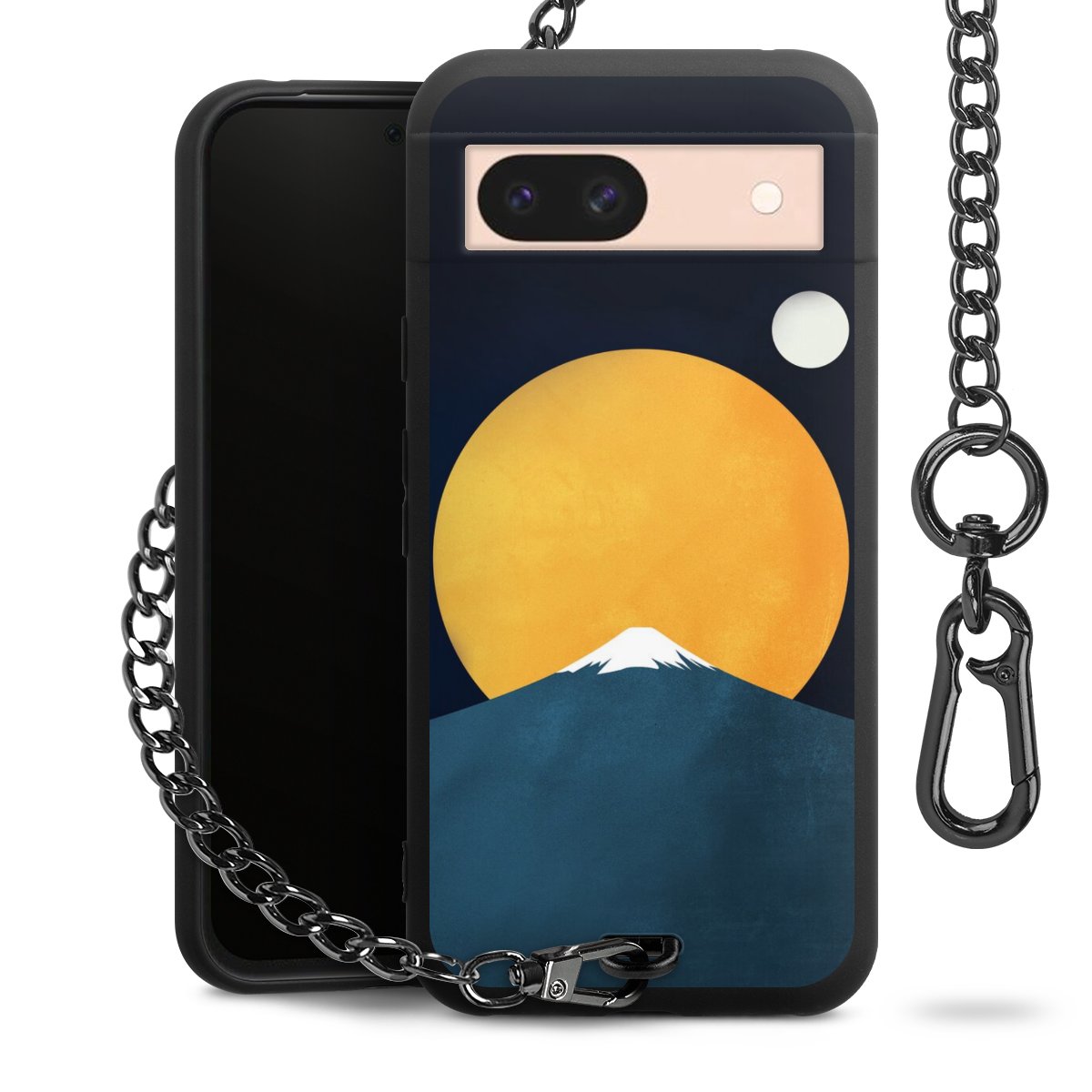 • Mattschwarze Handyhülle mit Metallkette