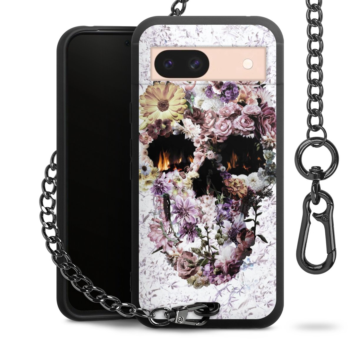 Die mattschwarze Silikon-Handyhülle besteht aus robustem TPU (thermoplastisches Polyurethan). Sie ist flexibel und schützt Dein Smartphone vor Stößen und Kratzern. Die Kette sowie der Karabinerhaken sind aus Metall in Gunmetal-Optik gefertigt. Für dieses Produkt kommen ausschließlich TÜV-geprüfte Materialien zum Einsatz.