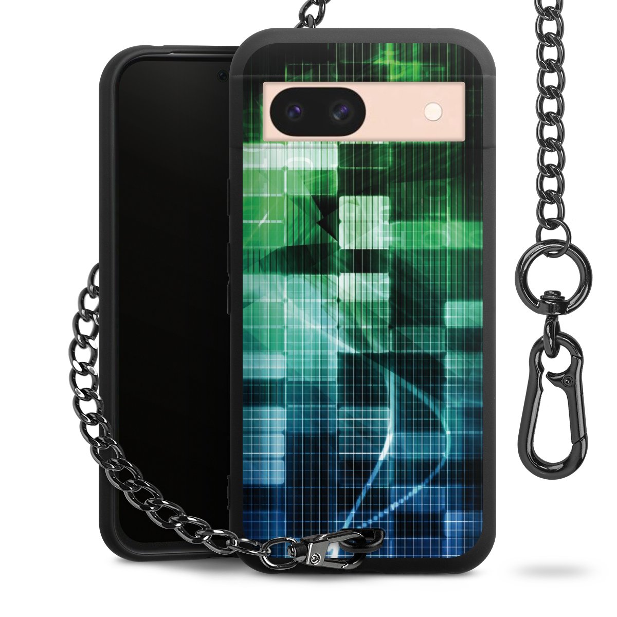 Die mattschwarze Silikon-Handyhülle besteht aus robustem TPU (thermoplastisches Polyurethan). Sie ist flexibel und schützt Dein Smartphone vor Stößen und Kratzern. Die Kette sowie der Karabinerhaken sind aus Metall in Gunmetal-Optik gefertigt. Für dieses Produkt kommen ausschließlich TÜV-geprüfte Materialien zum Einsatz.